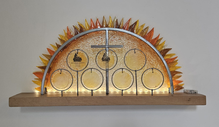 De NoorderLichtGemeente te Zeist heeft een Plek van Aandacht, met houten bogen die verwijzen naar de dragende bogen in de kerkzaal, die bescherming en geborgenheid geven, die geaard zijn op de grond en reiken naar de hemel. Het bewerkte koper voegt zich tussen en om de bogen: een opwaartse beweging van levenskracht en vuur. De kreukels, deuken en rimpels weerspiegelen het Licht en het leven. Langs de bogen kringelen draden, beekjes van kracht, die verbinden en kleur en groei brengen. Aan de draden hangen koperen rolletjes met daarin de namen geschreven van overledenen en gedoopten. De rolletjes van overledenen hangen wat open, die van de gedoopte kinderen zijn nog opgerold. De namen hangen zo in de ruimte tussen de bogen, waar beweging is en de wind, de Geest, doorheen waait.