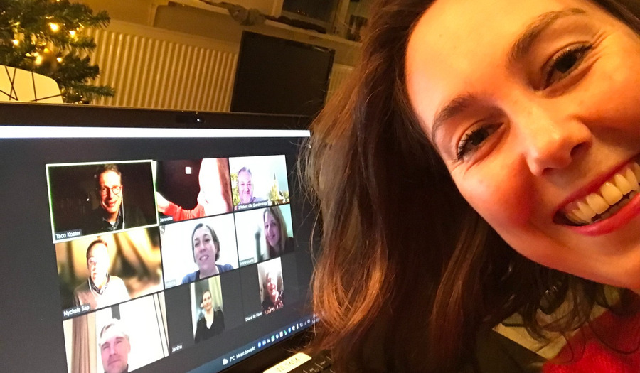 Tekst: Thea Westerbeek | Foto: Kerkenraad Protestantse Gemeente Zunderdorp vergadert digitaal. Op de voorgrond diaken Janneke.